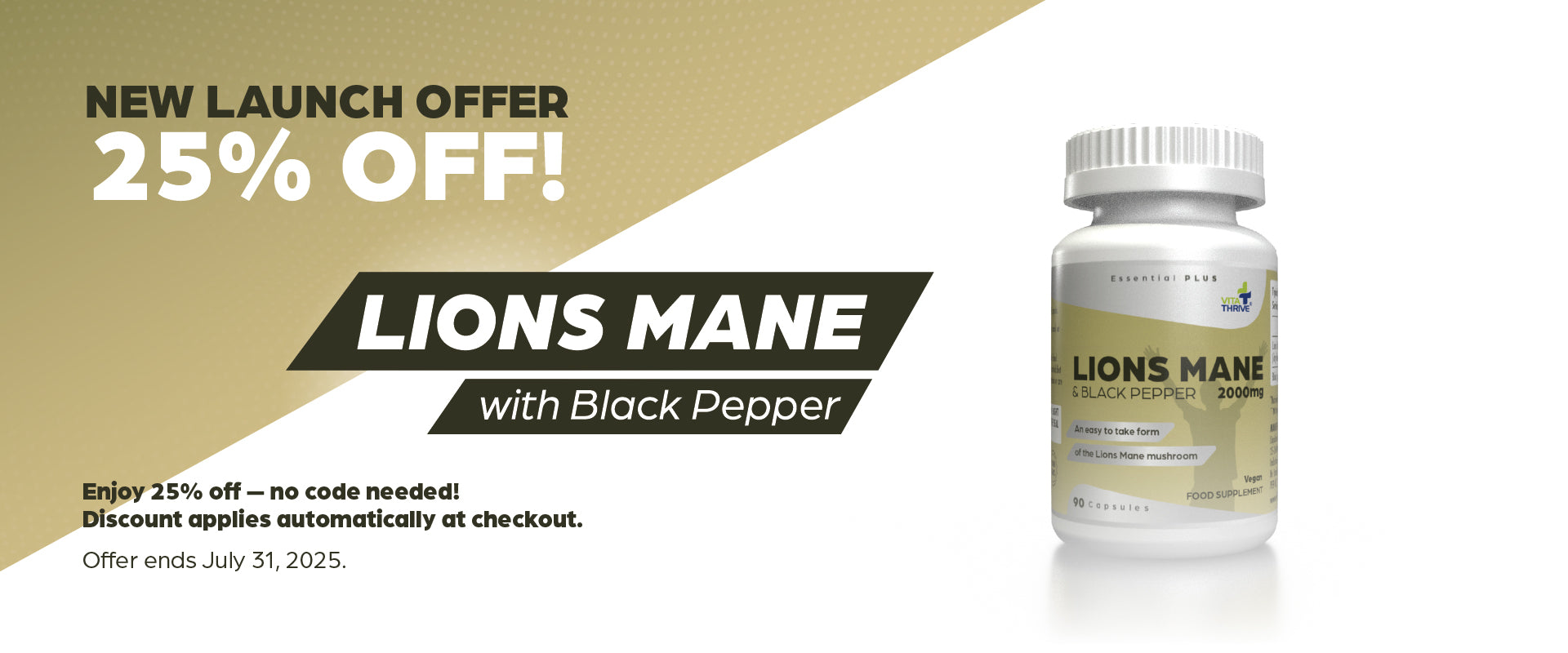 VitaThrive® Lions Mane 2,000mg & Black Pepper Capsules