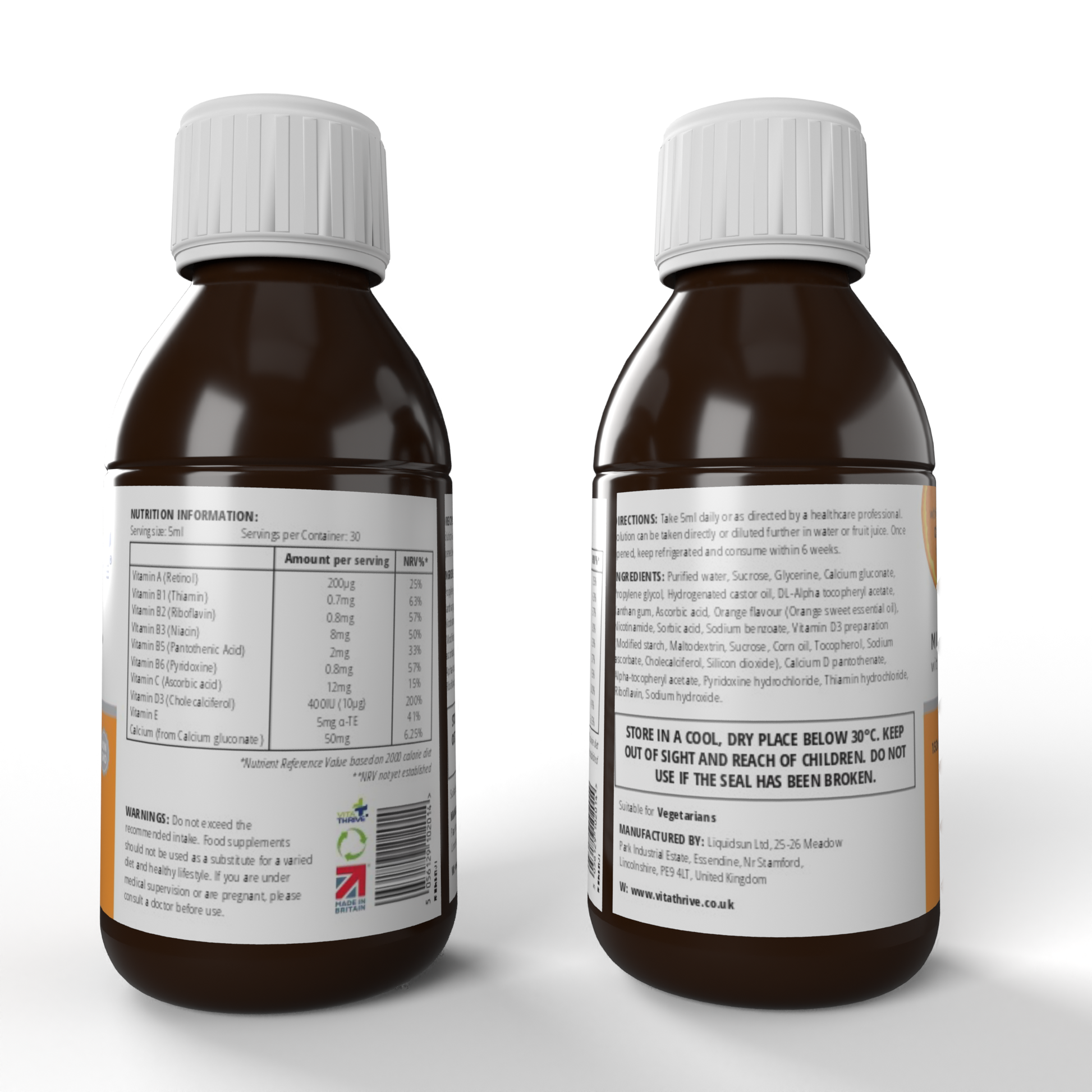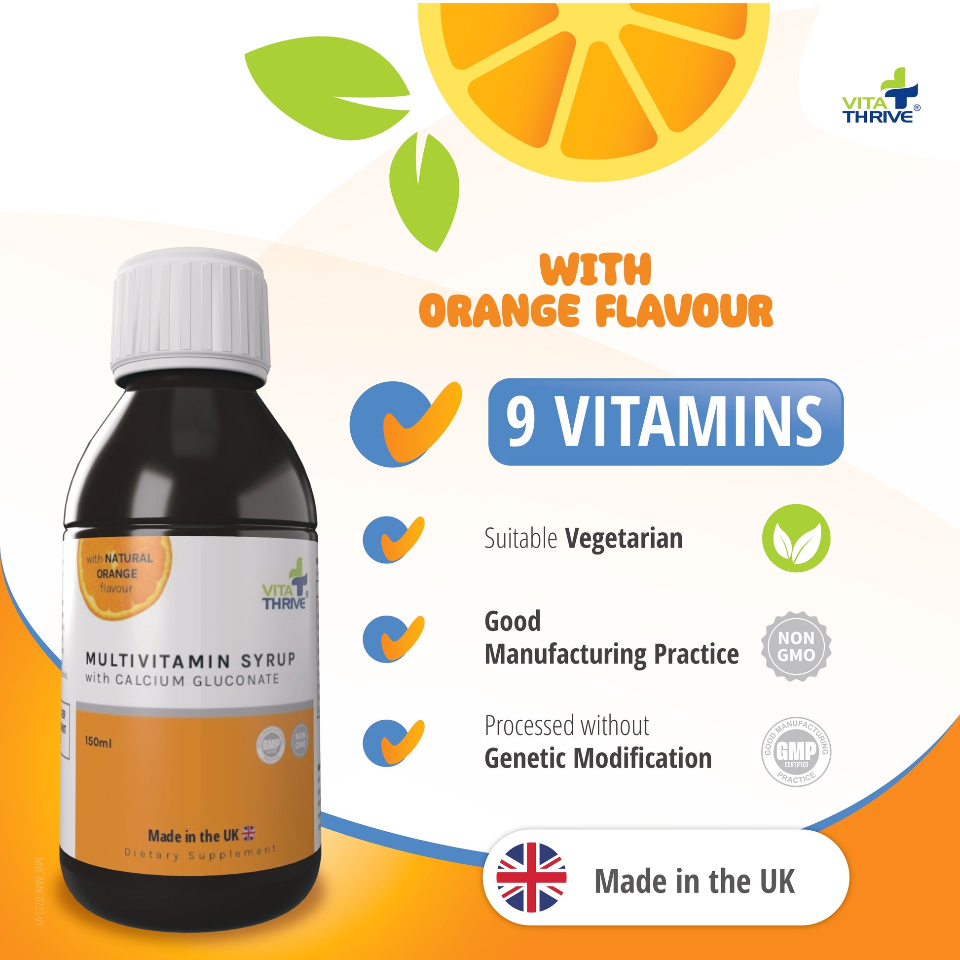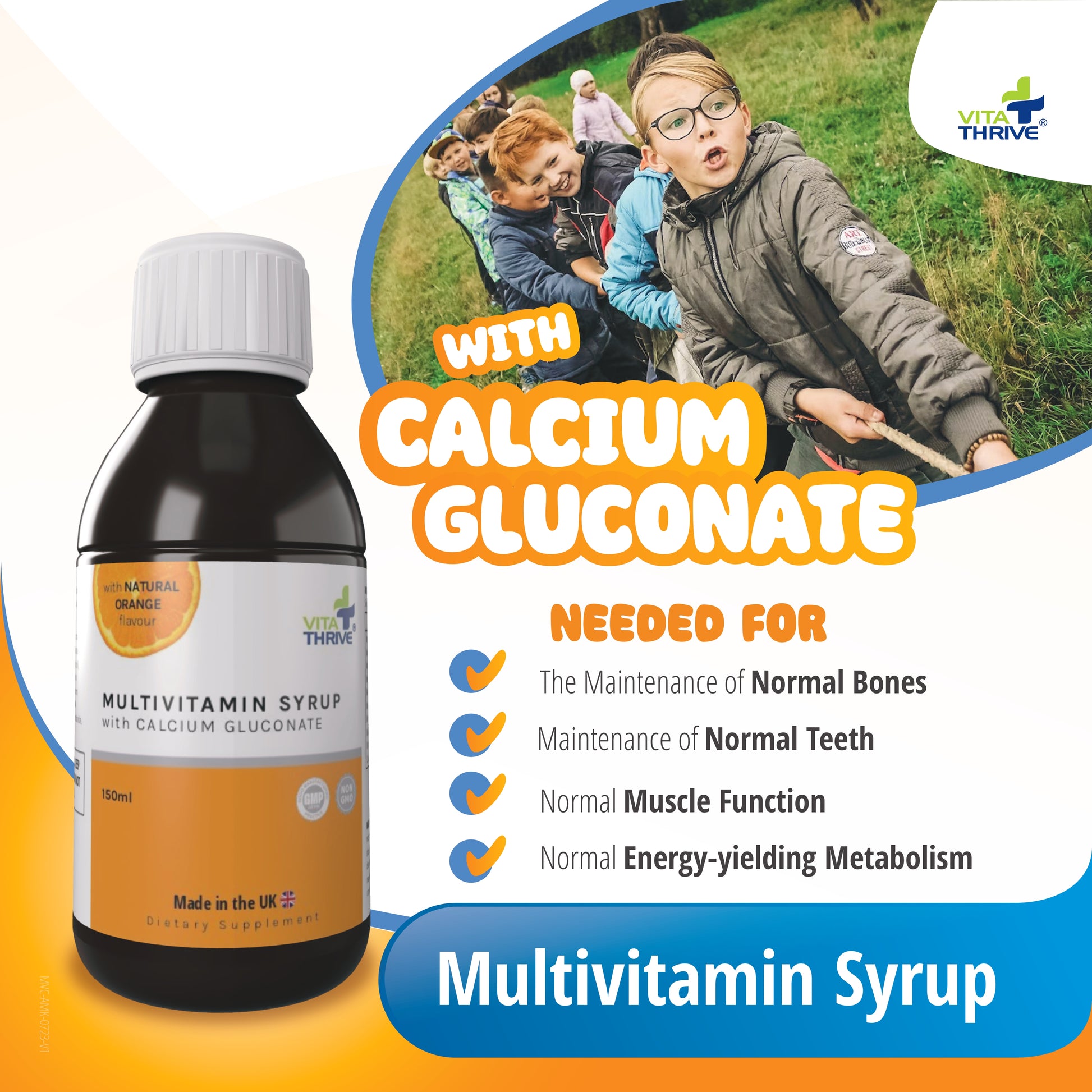 VitaThrive® Multivitamins for Children with Calcium Gluconate Liquid Oral Syrup – with Natural Orange Flavour