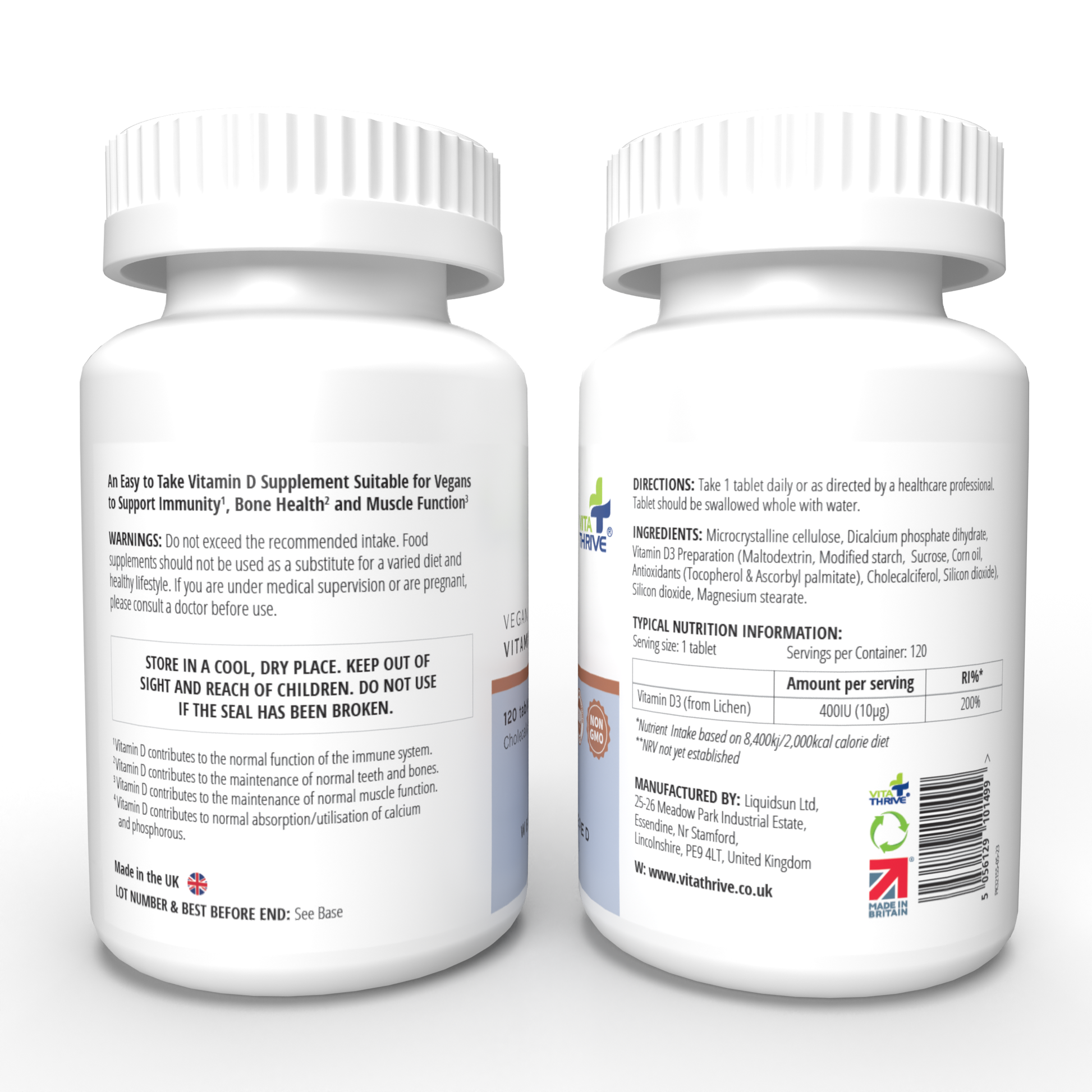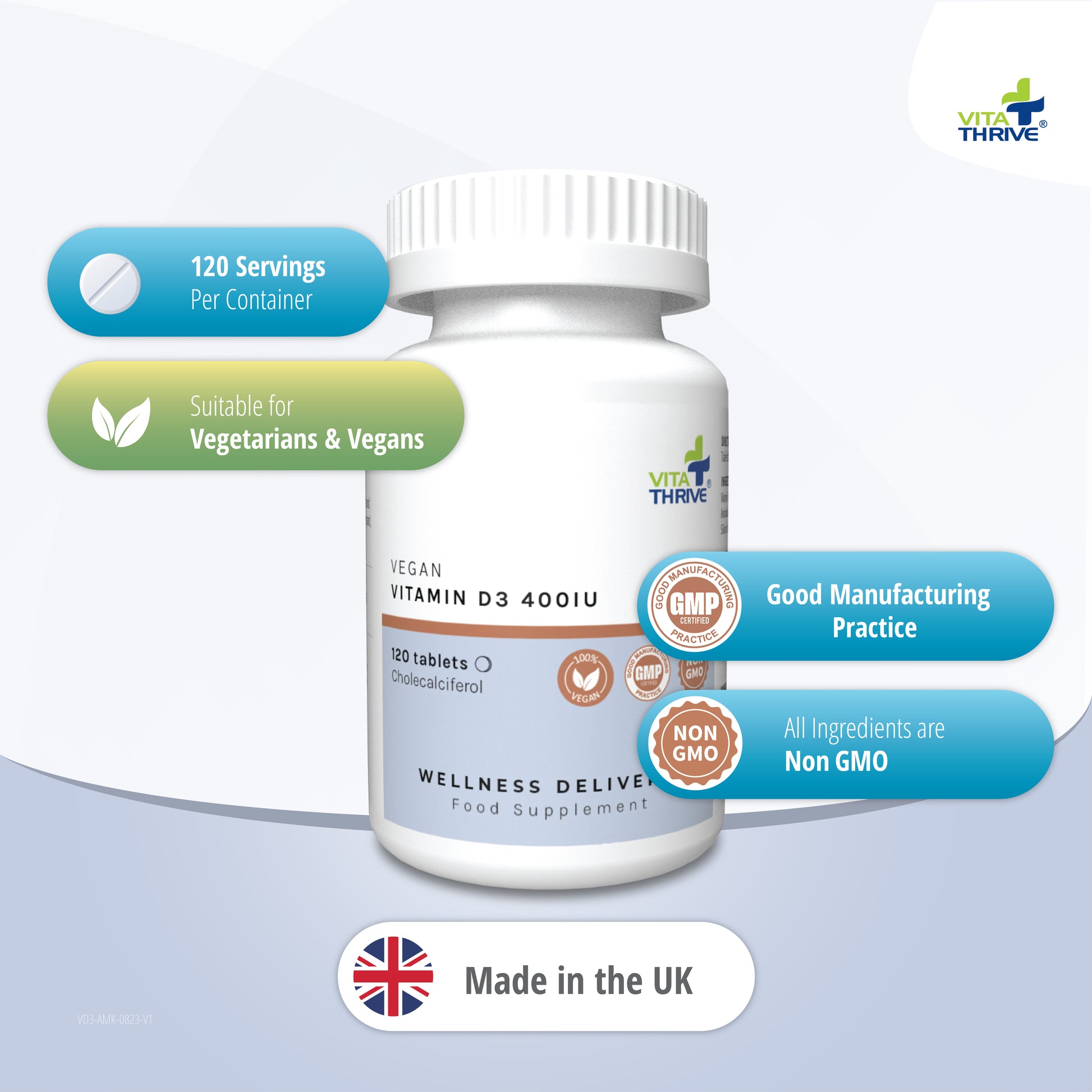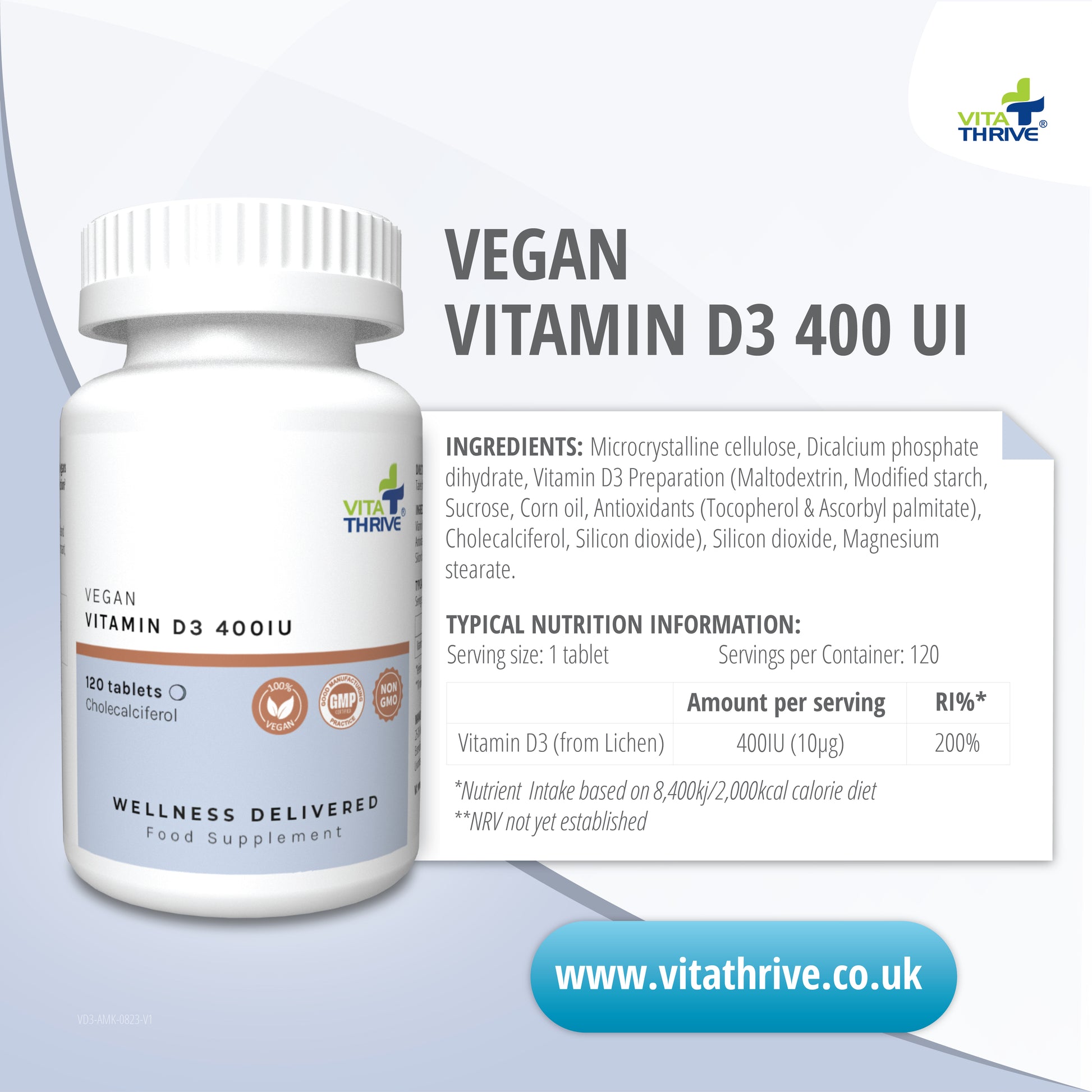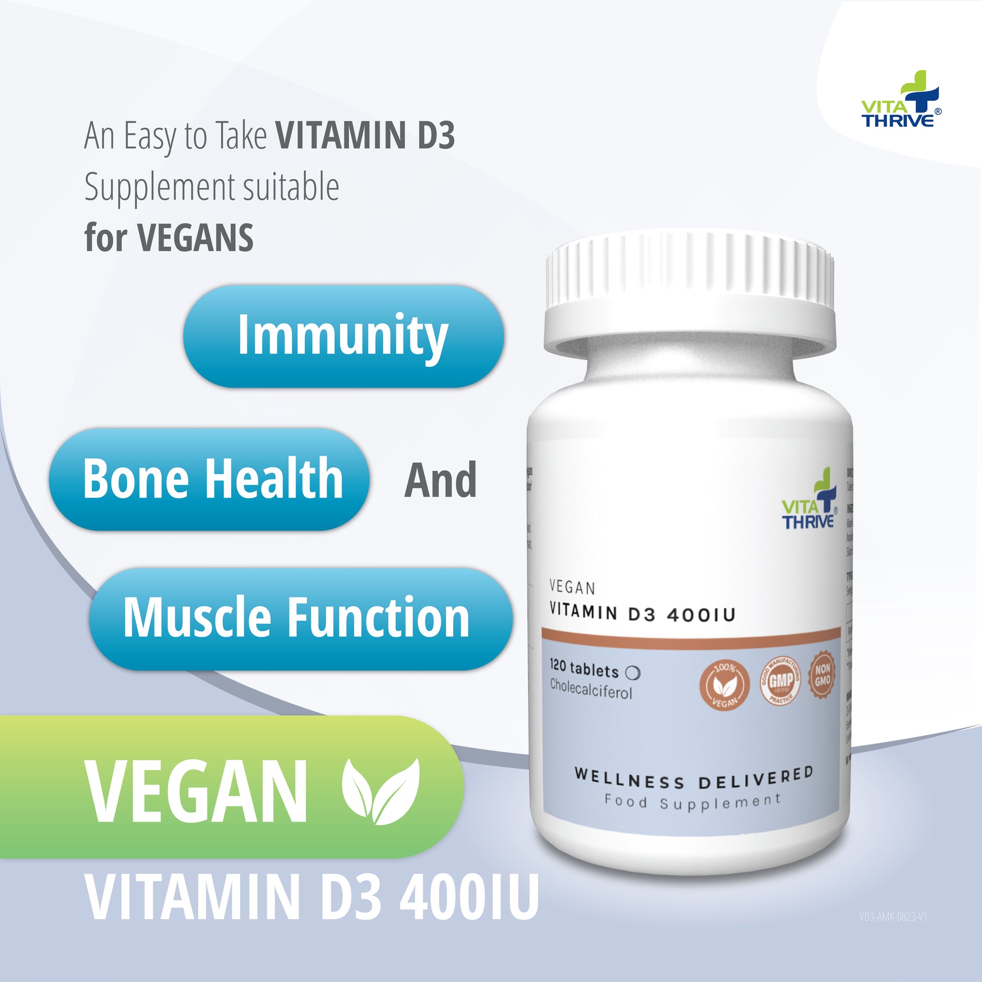 VitaThrive® Vegan Vitamin D3 400iu– 120 Tablets