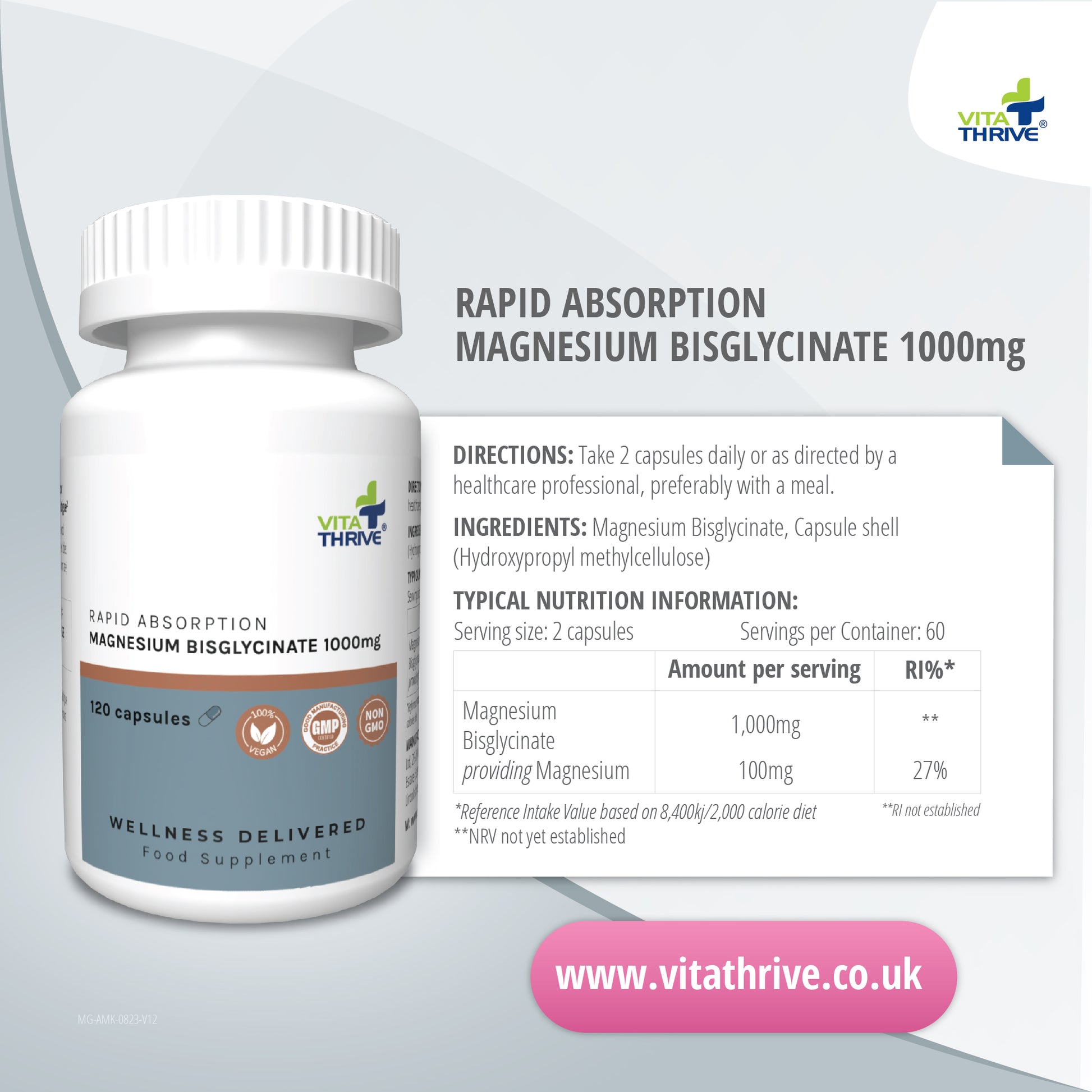 VitaThrive® Rapid Absorption Magnesium Bisglycinate 1,000mg – 120 Capsules