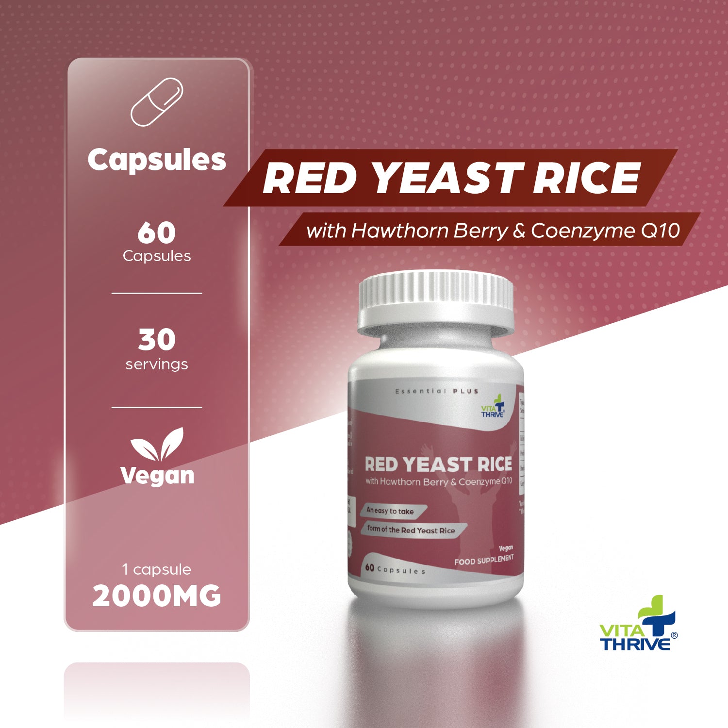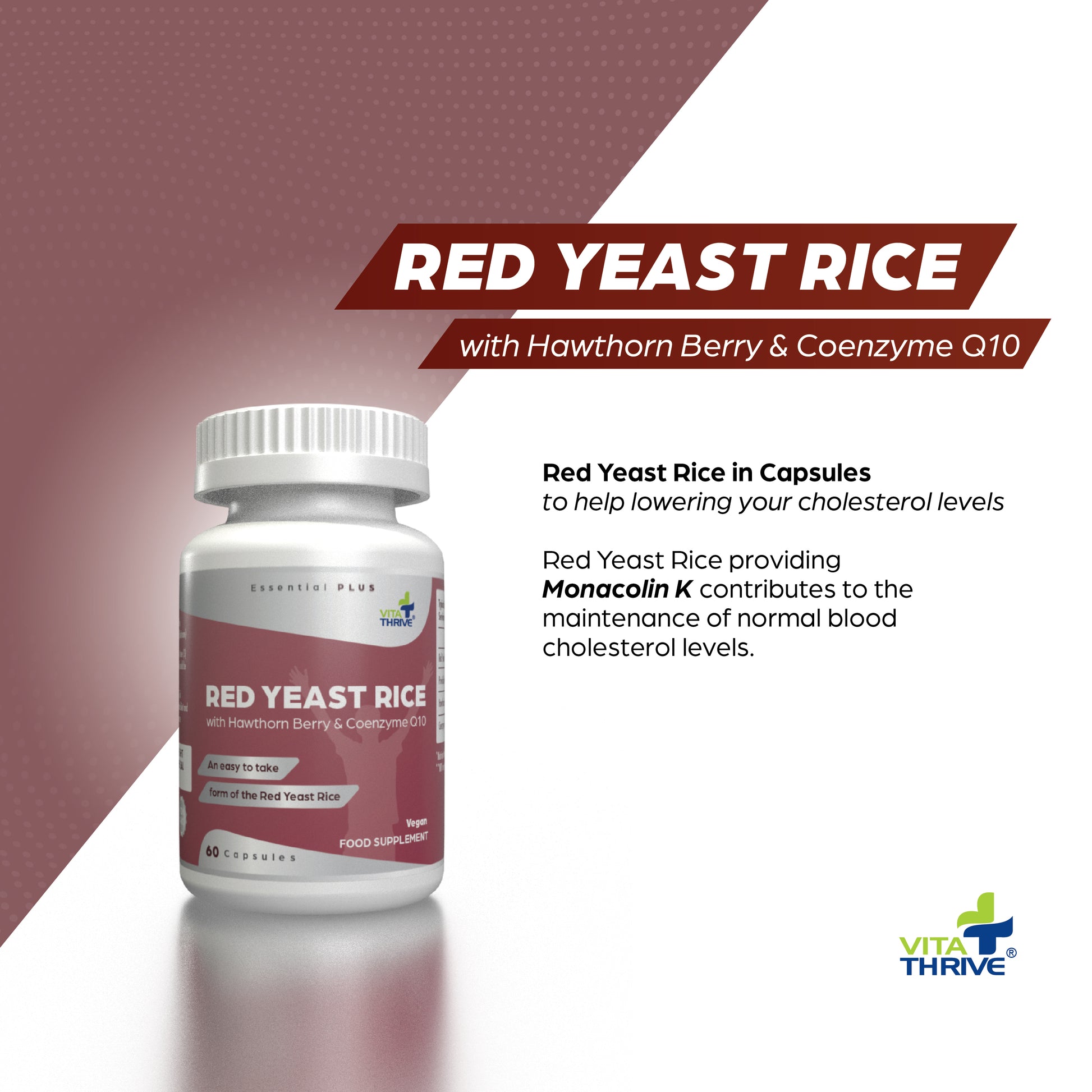 - Our range of products are carefully designed and manufactured under exacting standards using only the finest ingredients. VitaThrive Cholesterol Support with red rice yeast capsules are vegan and vegetarian friendly and contain no artificial colours or preservatives.