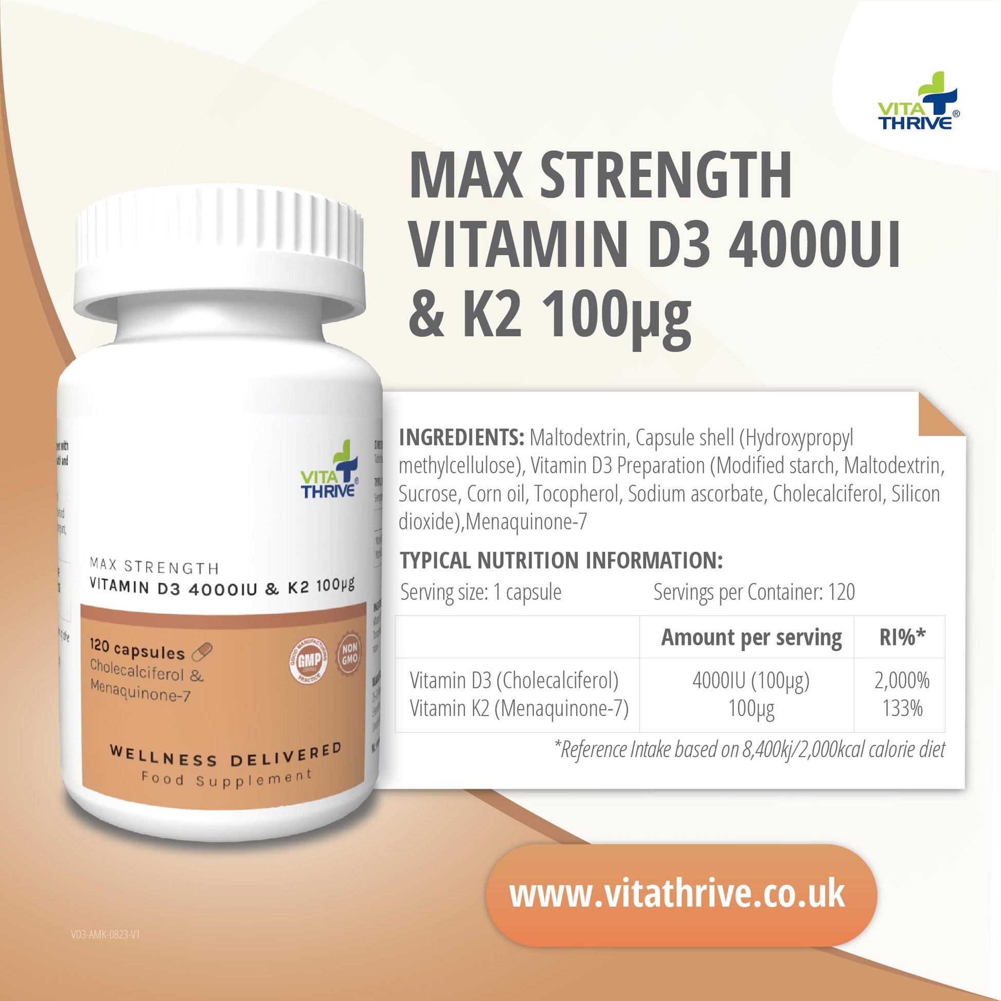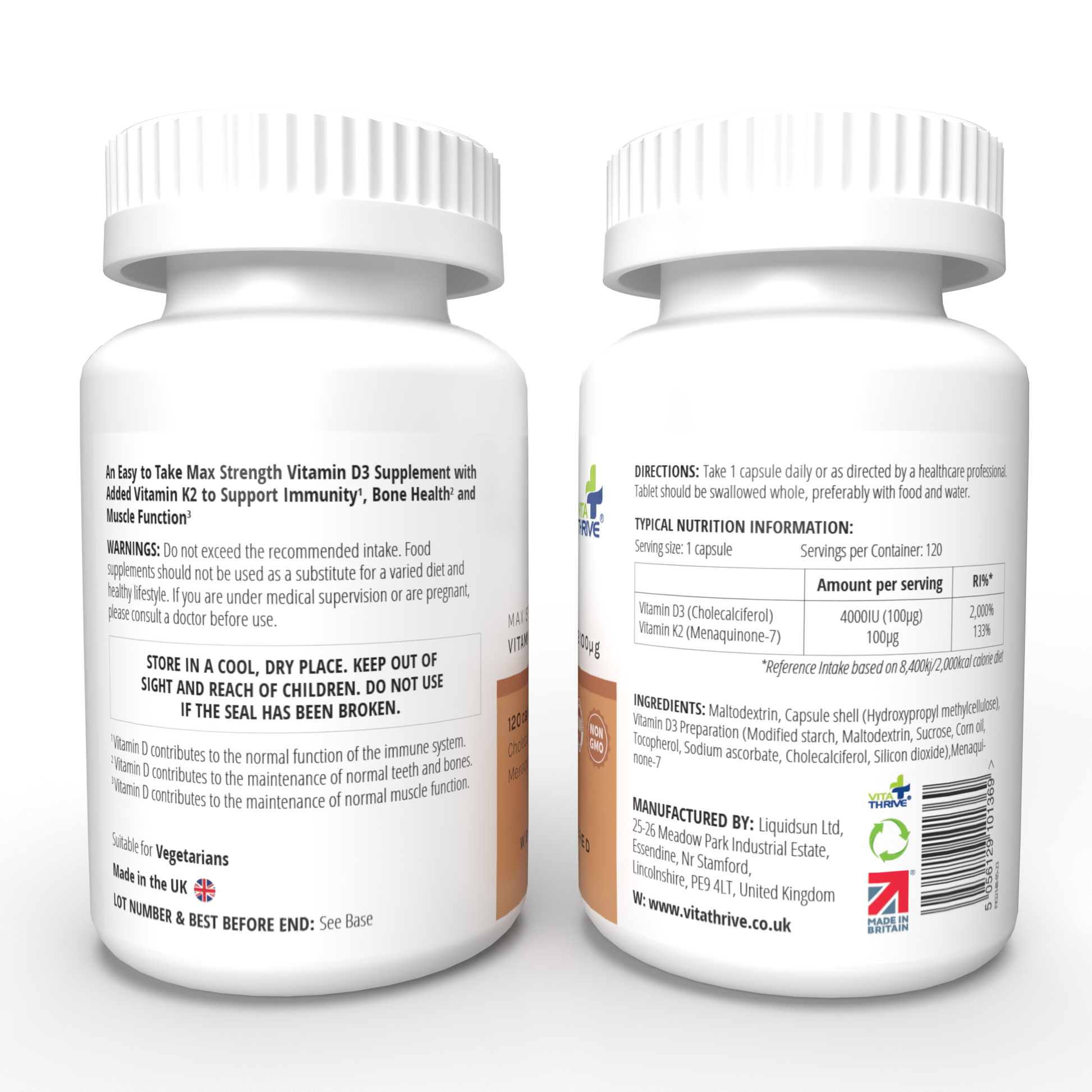 - VitaThrive vitamin D3 and K2 capsules provide a reliable, powerful daily dose of these essential nutrients ensuring you have the best outcome of our products.
